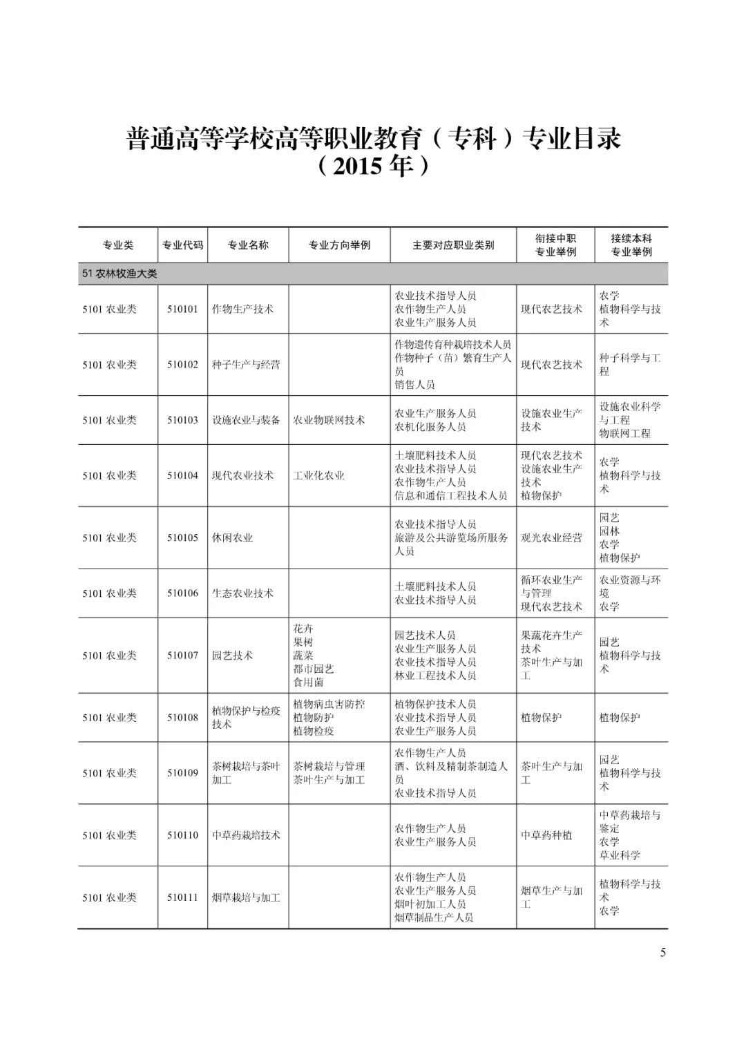 专业目录(2015年)