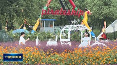 在张湾区黄龙壹号生态园,五彩缤纷的波斯菊、清香扑鼻的白百合、迎光微笑的向日葵、随风摇曳的紫色马鞭草,各色植物组成了五彩花海。游客们坐上网红小火车,穿越花海,打卡拍照,享受美好假日时光。
