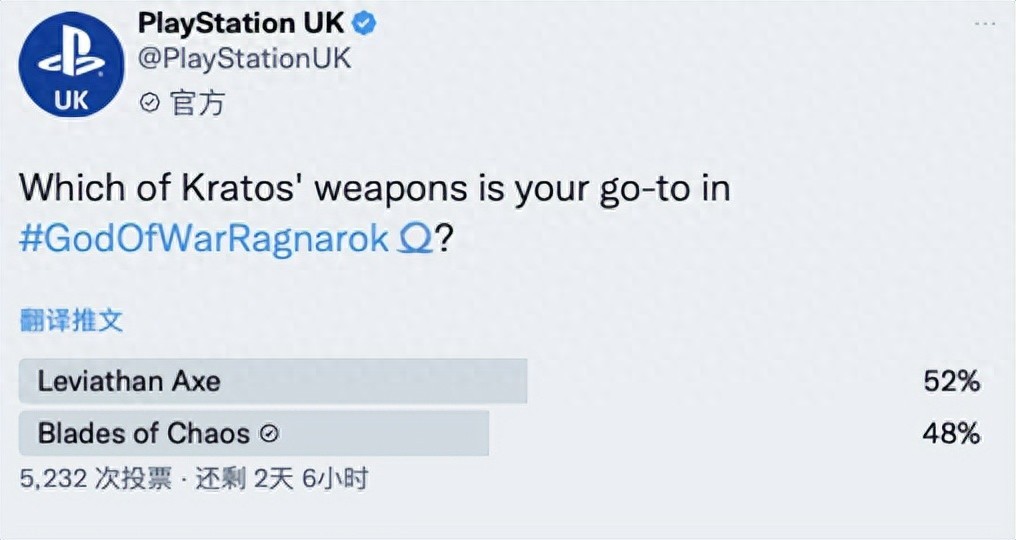 PS英国近日就“玩家在《战神:诸神黄昏》中最喜欢的武器”发起了一项投票,最终“利维坦之斧”以微弱优势超越“混沌之刃”成为更受玩家喜爱的武器。有玩家表示,用混沌之刃来群控,利维坦之斧来打伤害,两者缺一不可。也有人表示在该作中,混沌之刃的群控技能和快速攻击相比前作都有所增强。
