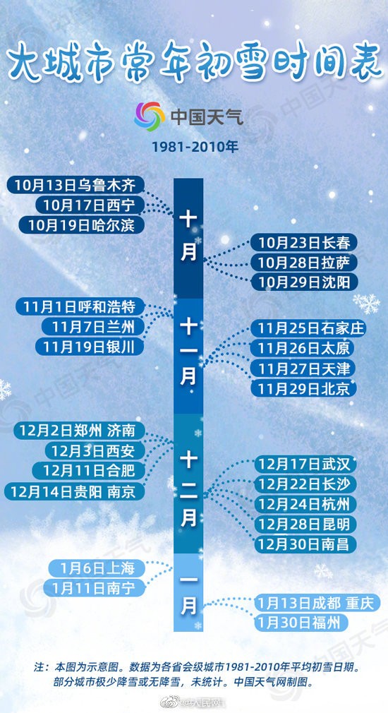 【听说初雪最适合表白!敢不敢艾特ta?】下雪啦!本周我国北方多地陆续迎来今冬的首场降雪,长春、呼和浩特、沈阳等地都已在这轮过程中“签收”初雪,华北、西北一些地方的初雪也已“发货”。未来还有哪些地方即将迎来今冬的初雪?初雪时间表出炉 看看你离初雪还有多远!@中国天气