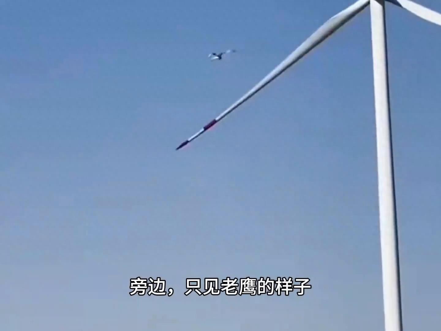 老鹰盘旋在巨大风钻上,发出奇怪叫声,下一秒老鹰从高空坠落
