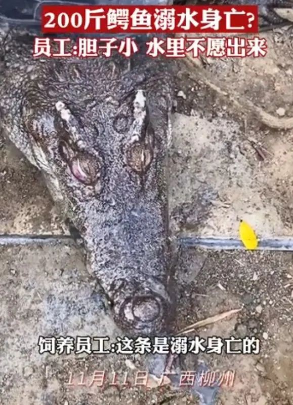 近日,广西柳州一名鳄鱼养殖场员工晒出视频称发现一只溺水身亡的鳄鱼