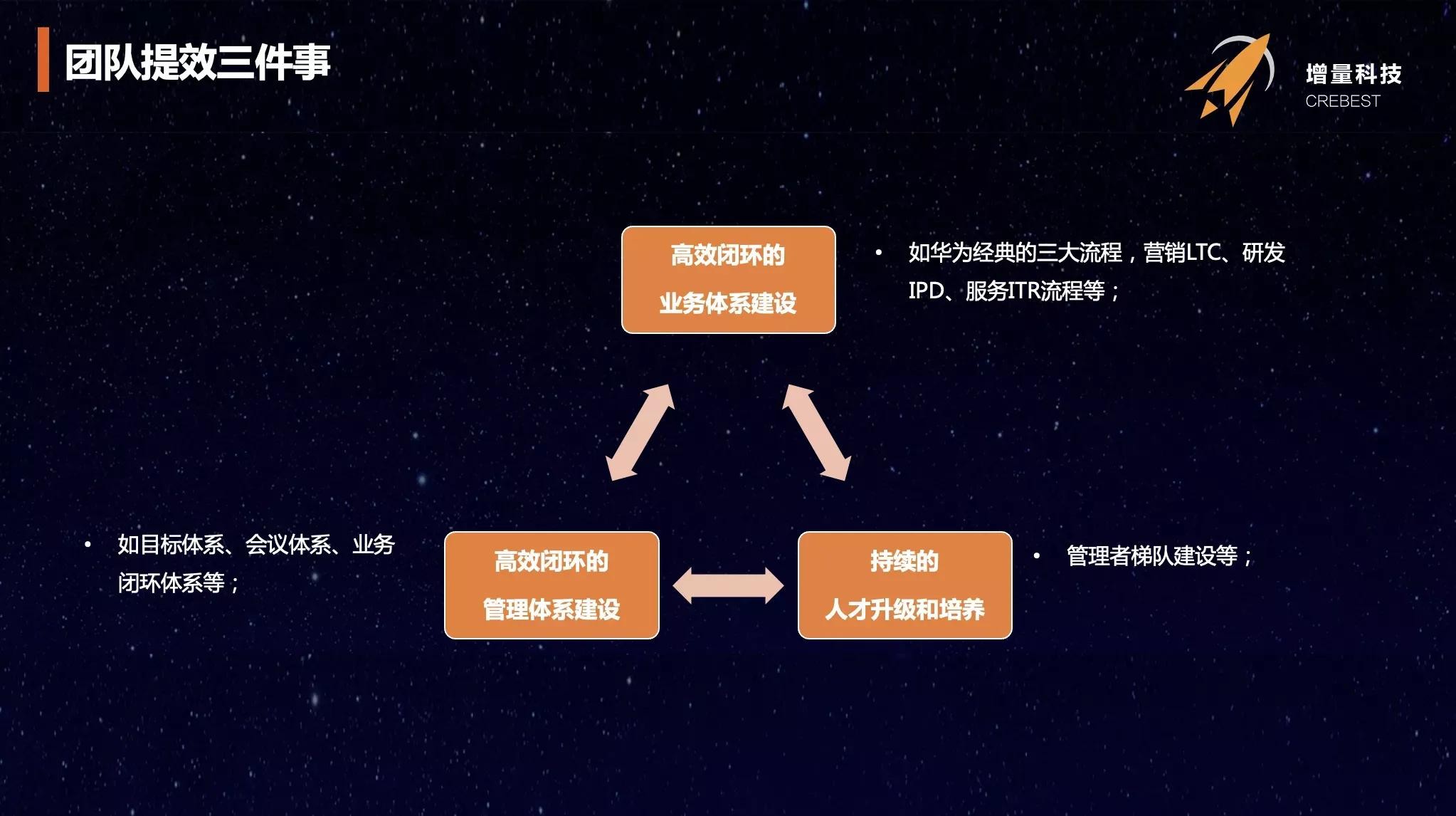 2)体系突破。构建促进目标达成的管理体系,如战略解码、目标分解与复盘、人才排兵布阵、激励分配和资源投入等,以高效达成目标为宗旨。