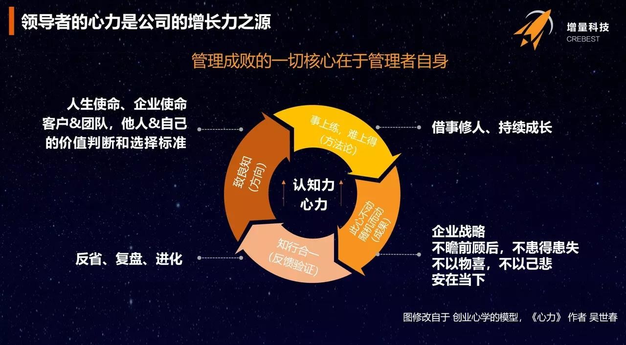 4)CEO既是人,又是法人。人是人性,法人是规则。CEO不要太看自己人的属性,要把自己变成规则,将来变成规律。