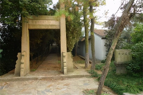 黄公望墓塚位于纪念馆一旁,首先看到的就是一座石牌坊,上书“元高士黄大痴先生墓道”,旁边立着文保碑。