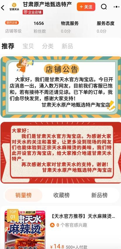 清明小长假期间,天水的人气直线上升,吸引了海量食客前来朝圣。然而,大部分人不知道的是,天水市政府采取了一个富有创意的举措——在网上设立了官方商店,让远在他乡的食客也能一尝地道的天水味。