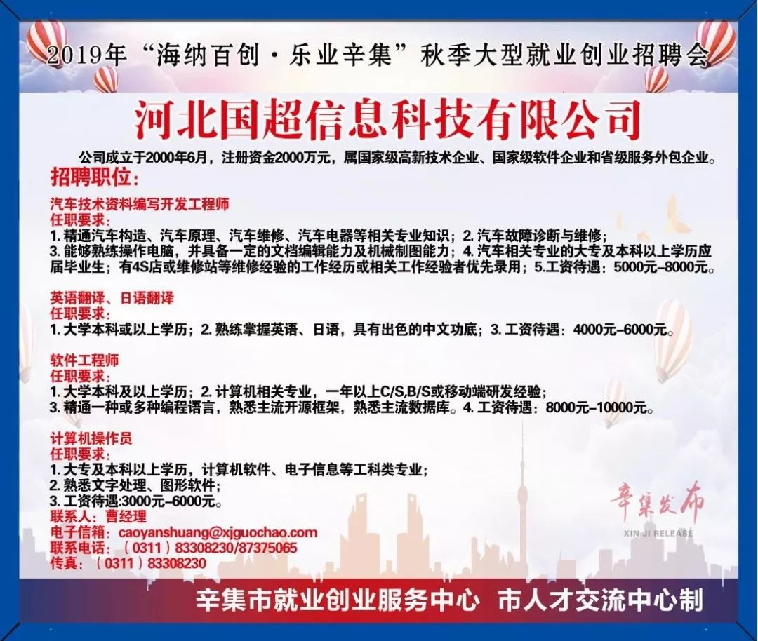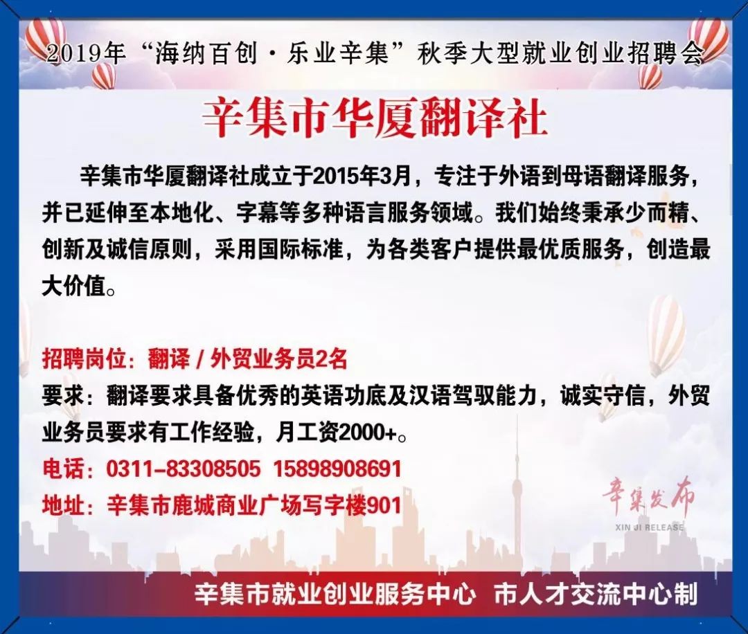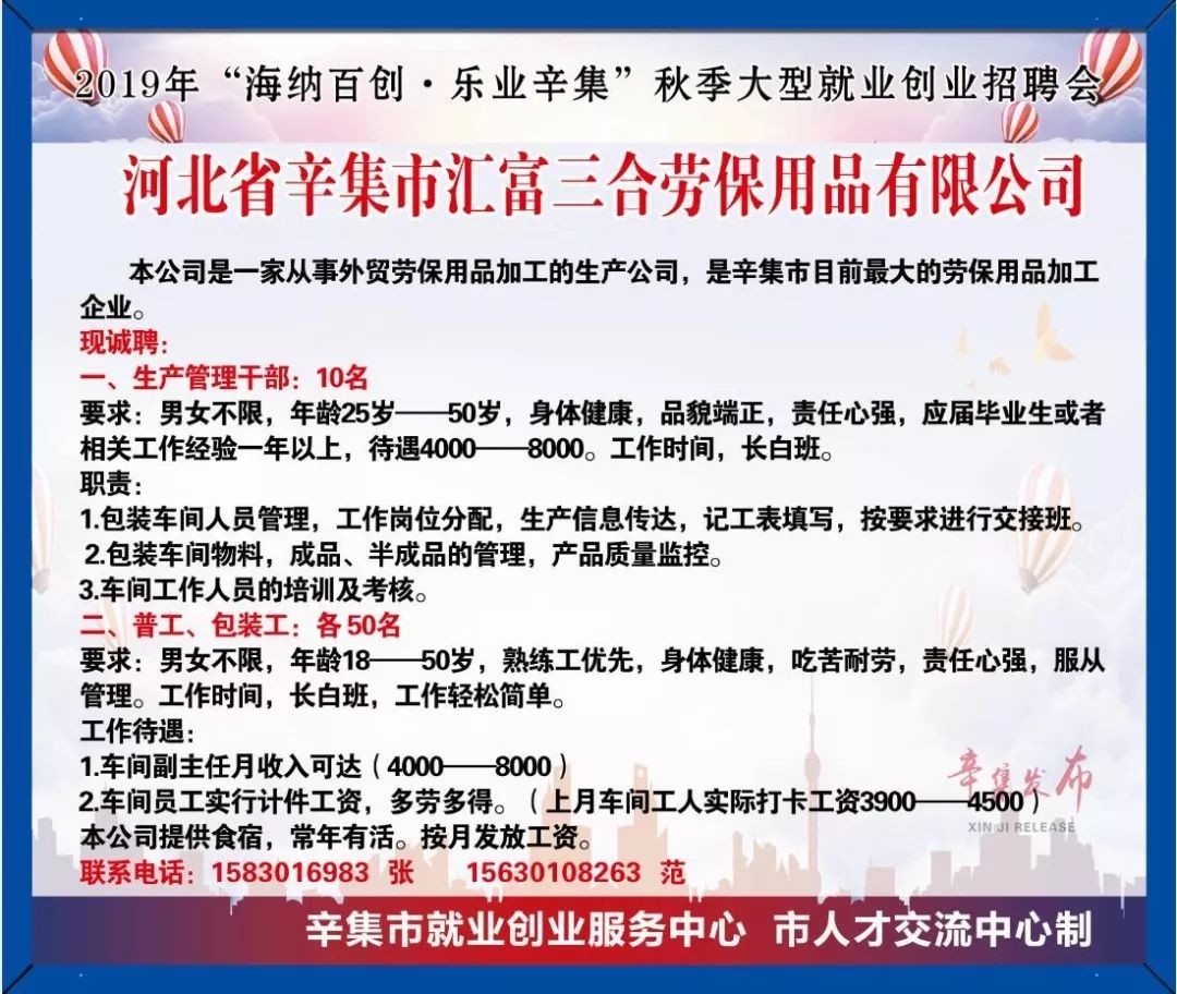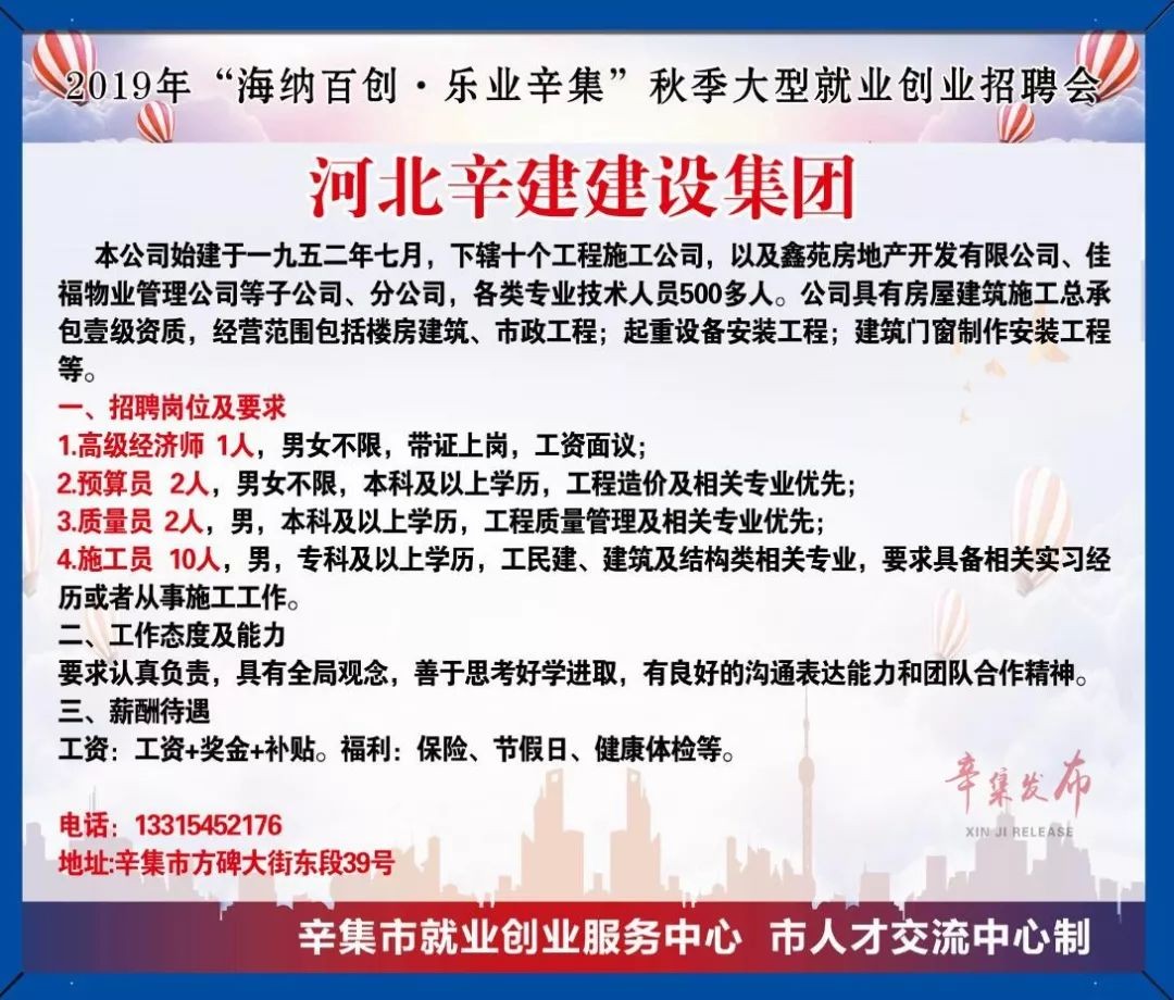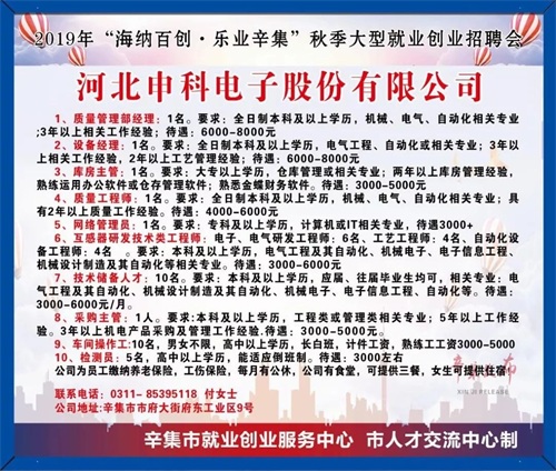 招人!招人!辛集10000多个用人岗位大公开