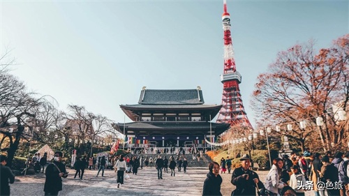 如果想白天,近距离的观赏东京塔,最好的位置莫过于铁塔南边的增上寺以及芝公园了,从增上寺的正门入内,你就可以看到巨大的东京塔,在寺庙大殿的后方竖立。