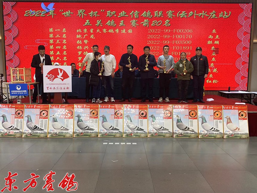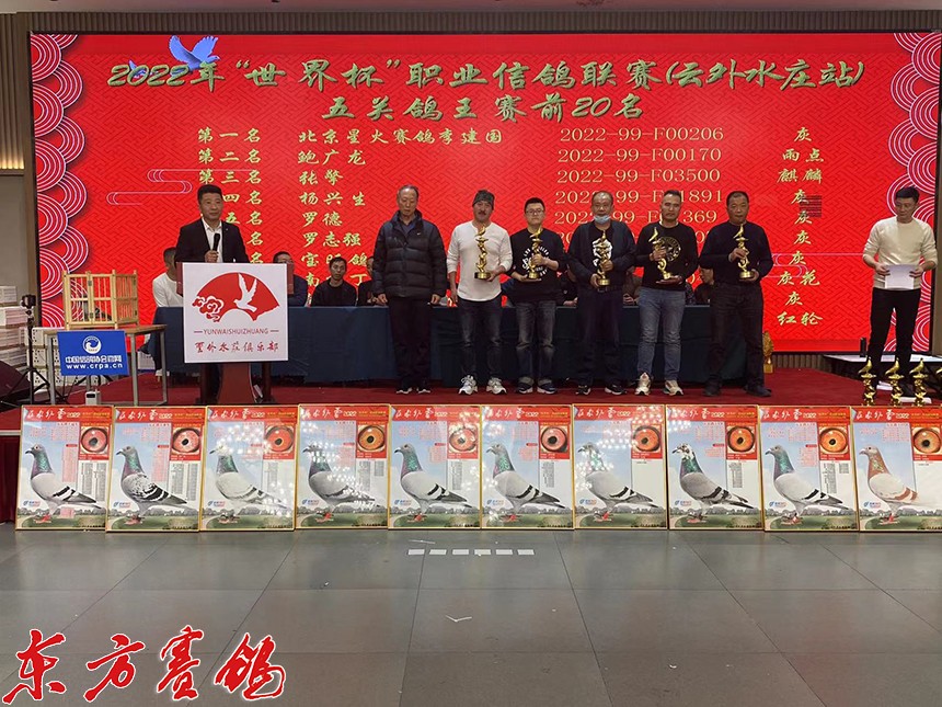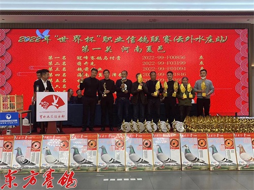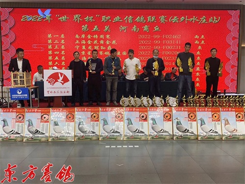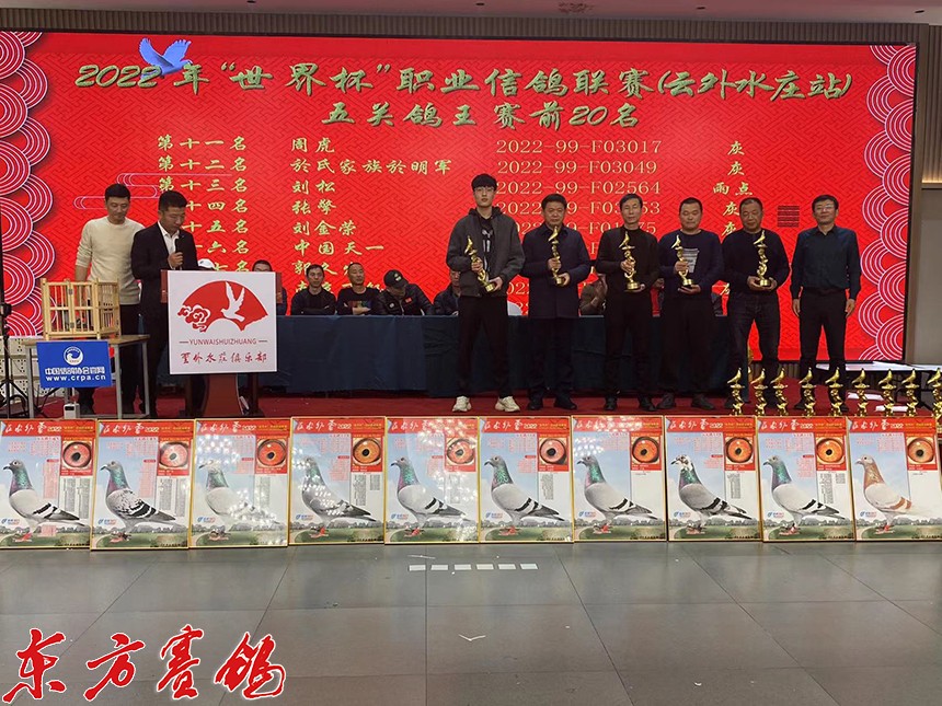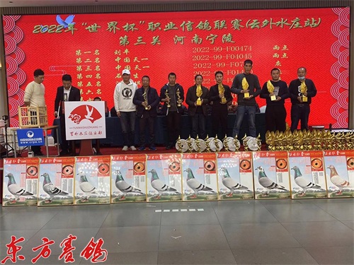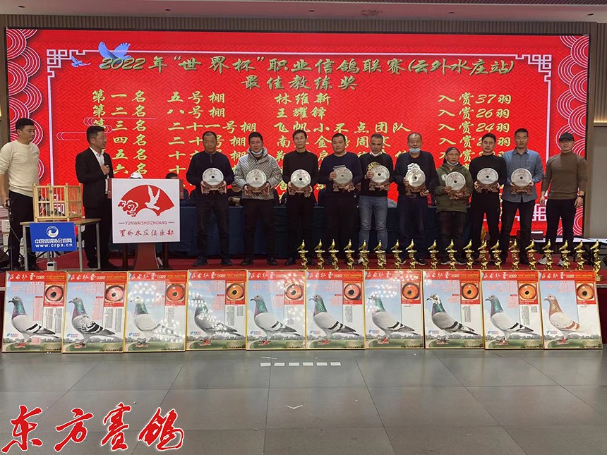 载誉江南虎啸堂赛鸽文化朱绍峥老师为第一关前十名鸽友颁奖。