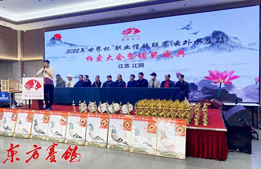 2022年12月10—11日,江苏云外水庄俱乐部2022年“世 界 杯”职业信鸽联赛(云外水庄站)五关鸽王大奖赛颁奖拍卖盛典在江阴市月城镇双泾生态园大酒店隆重举行,来自全国各地的信鸽行业的鸽友、颁奖嘉宾、俱乐部的参赛会员共300多人欢聚一堂,度过了一个快乐的双休日,这是在新冠疫情全国解封后华东区域首个欢声笑语的颁奖拍卖会现场。