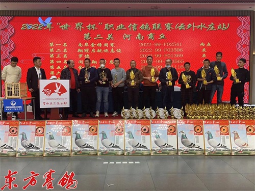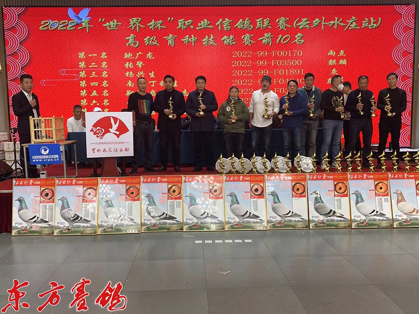 南京赛鸽名家丁钰生为第二关前十名颁奖。