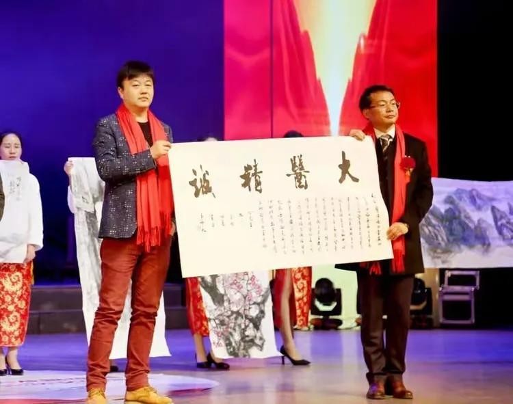 晚上,由一首《中医人之歌》拉开了文艺晚会的序幕,著名书画家吴三大、乔玉川、张雪丹、卫俊贤、魏良、蔡辉等助力中医药发展事业现场赠送墨宝。