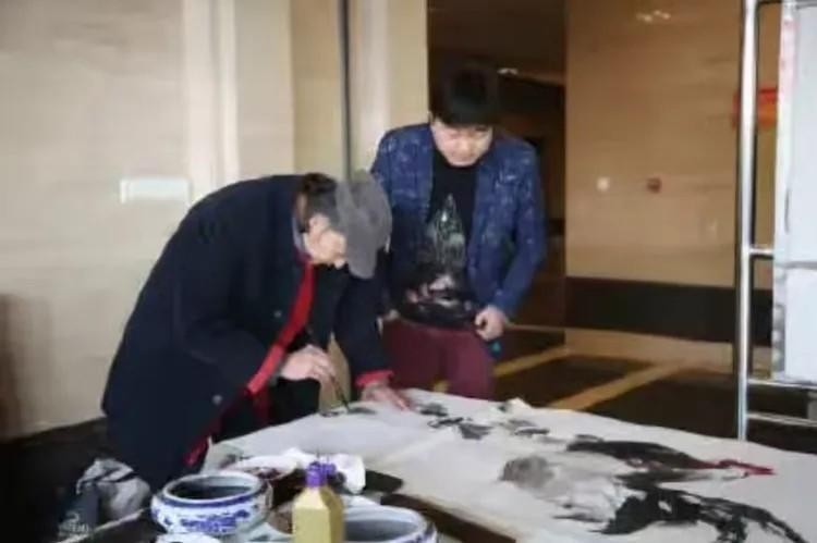 著名画家乔玉川先生现场创作,乔玉川老师虽然年岁八十有余,可娴熟扎实的笔墨功底在画作上游刃有余,人物画作动静相加,目光炯炯有神,流畅的人物线条非常老辣。短短的一个小时就完成了一幅画作。