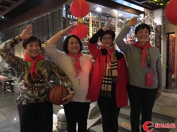 图说:张爱玲和发小戴上了红领巾,敬起了队礼 见习记者 陈慧琴摄