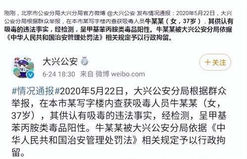 2020年6月,牛萌萌因为聚众吸毒被抓,从此被封杀。