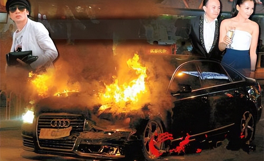 一辆大众旅行车“故意撞击”一辆黑色奥迪轿车,导致后者起火燃烧,火光冲天,将行人们吓得胆颤。
