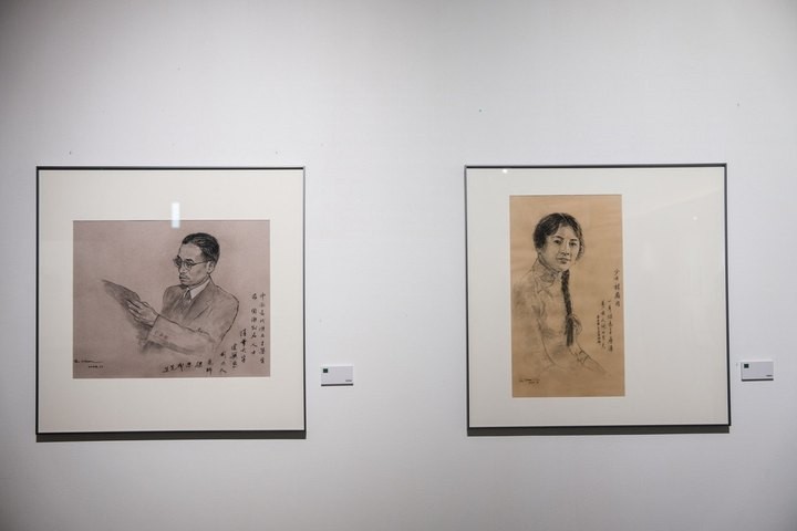 此次展览分为尊师篇、速写篇、画作篇,就可以看到他为几位授业老师画的画像。