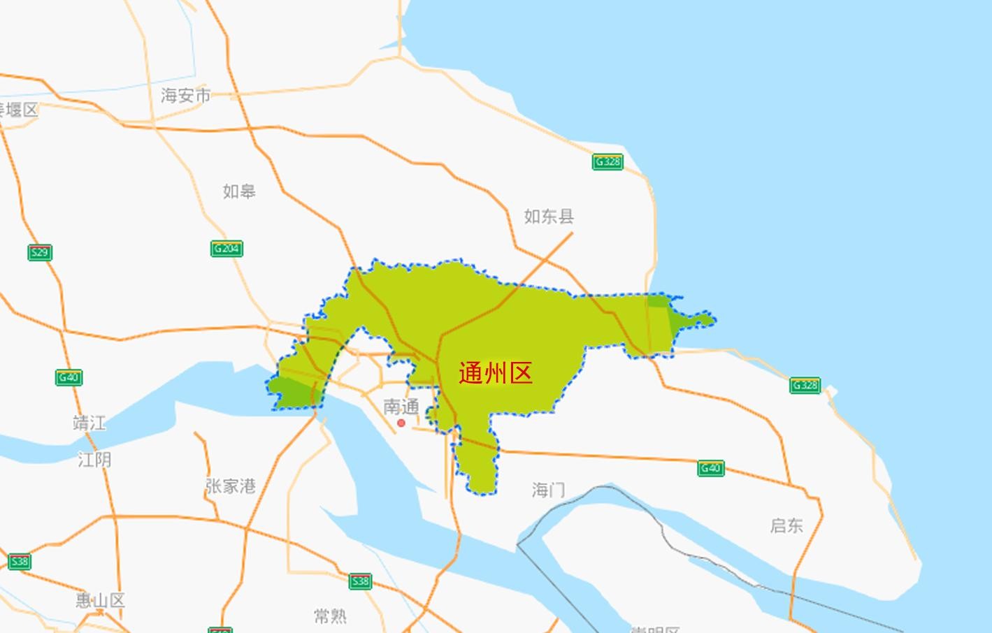 南通市通州区位于长江三角洲北翼,西部地区南濒长江,江岸线长10.77公里;西南与崇川区相接,东南与海门市为邻,北与如东县毗连,西北与如皋市接壤;总面积1525.74平方公里,其中陆地面积1351.50平方公里、江海水域174.24平方公里。
