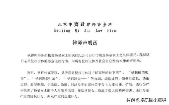 当然关于杨幂醉酒这件事情,杨幂官方也发布声明辟谣,维护了杨幂的清白形象。在杨幂官方声明中上面写的很清楚:“这些都是一些狗仔和恶意编造的虚假消息,毫无事实依据。