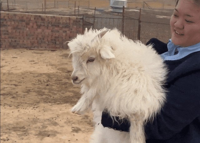 因为咱们内蒙古的羊,是特别特别出名的。不管从肉的品质也好、或者从羊的品种、精神陪伴这些都是特别好的。就像我们家的牧场,小羊就是阿拉善细绒羊,鄂尔多斯羊绒衫的羊绒就是从这种羊身上出的。
