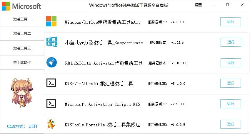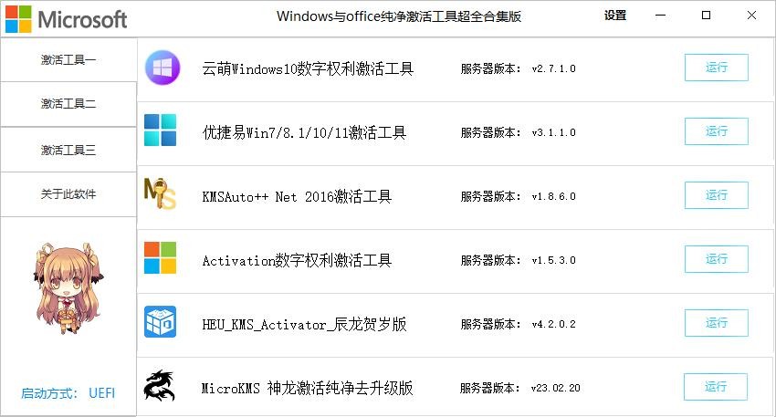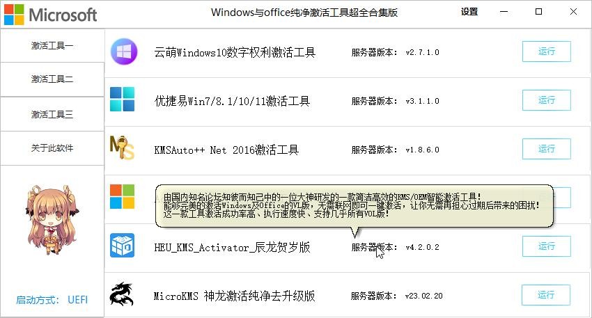 软件包括20多种工具,被网友推荐过好多次的“Activation数字权利激活工具”、“云萌数字权利激活工具”还有“HEU_KMS”,它都有集成在软件中。