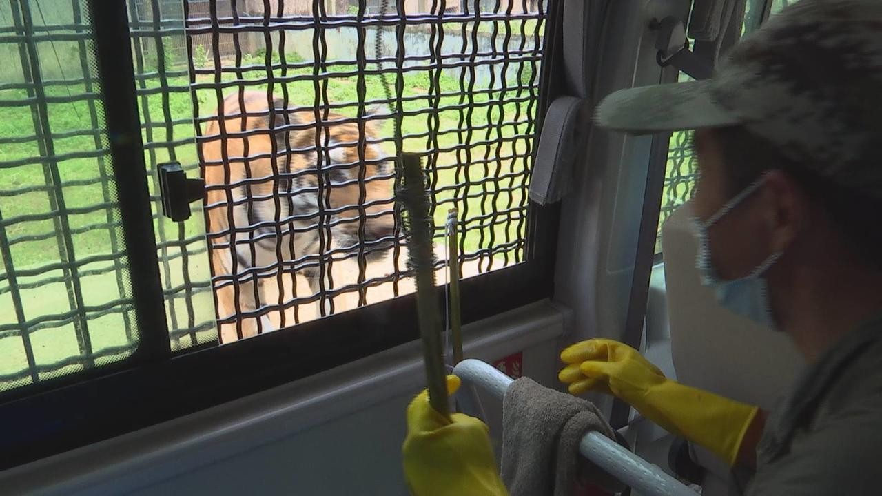 武汉九峰森林动物园饲养员彭悦告诉记者:猛兽车整个的游览行程大概是15分钟,可以看到东北虎、非洲狮和欧亚狼的一个近距离的吃食的过程。在乘坐的时候,一定要把孩子紧紧抱在怀中,不能随意站起来,要服从安全员的规范,不要随意开窗,一定不要把手伸出窗外。市民游客张先生说:“感觉这一趟下来还挺刺激的,狮子老虎张了这么大的嘴巴在我面前,还有狼、梅花鹿,这趟玩的感觉还挺开心的。”