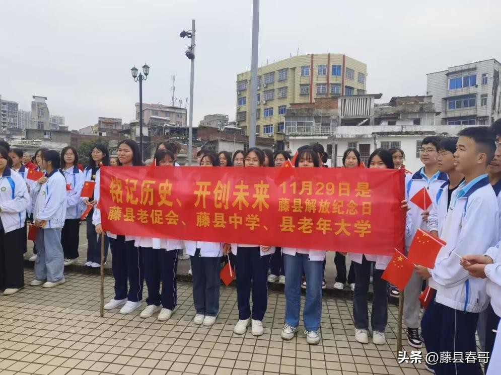 为进一步弘扬革命精神,传承红色基因,2023年11月29日,值藤县解放74周年之际,藤县中学与藤县老促会、县老年大学联合举办了藤县解放日纪念活动。