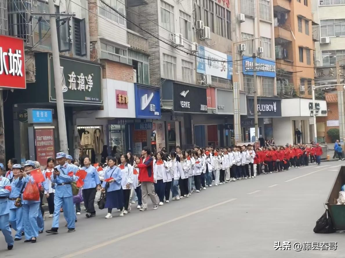 在今天的纪念活动上,藤县中学师生与藤县老促会、县老年大学到场的成员,通过沿街游行的方式向每一个为解放事业付出努力的人致敬。革命前辈们用他们的热血和汗水,为我们的民族独立和人民解放奋斗,我们要向他们学习,发扬他们的精神,为国家的繁荣发展和人民的幸福安康贡献我们的力量。