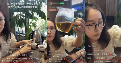 从媒体曝光的画面中可以看到,当时刘鑫打扮精致,在直播间公开露面。她笑颜莹莹,举着泡好的茶叶向观众展示宣传,显然是打算通过直播售卖茶叶的方式捞金。
