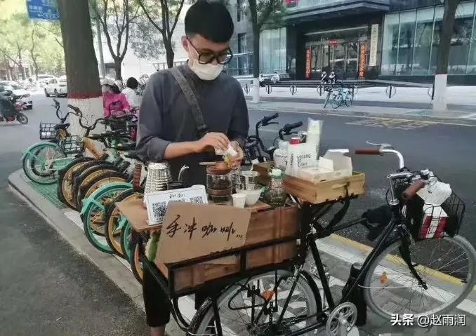 03一辆自行车上卖手冲咖啡,这地摊摆出了小资情调。