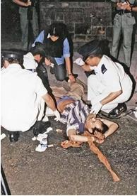 逃狱后的叶继欢逃回广东,避避风头。如果你认为叶继欢就这样不会再重返香港。那么你就大错特错了。很快,1991年,叶继欢带了几个同伙,买了枪械,再次潜入香港。这次他更加疯狂,手持AK47,身穿防弹衣,当街扫射,打劫金店,并长达数次击退香港警察的封锁。很快,叶继欢便被列为头号通缉犯。图中是叶继欢被打伤图。