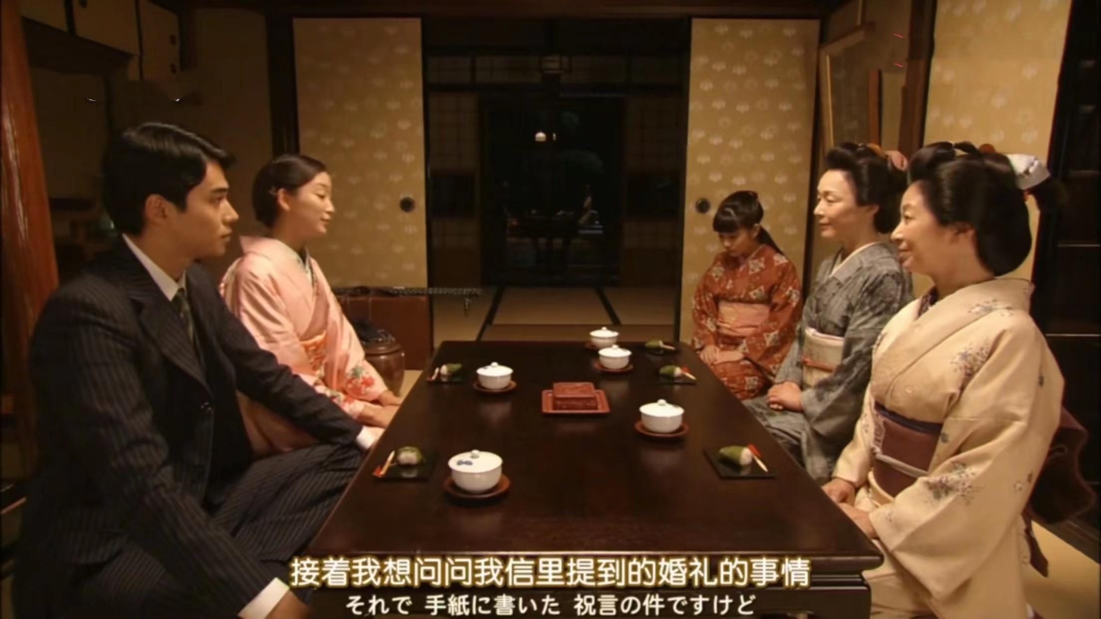 晚饭过后,大姐让芽衣子好好休息,自己帮她收拾酱菜,其余的让女佣人干,毕竟芽衣子明天要早起做早饭,这时悠太郎叫住大姐,问自己举行婚礼的事,大姐却没好气的回答,自己已经安排好了。