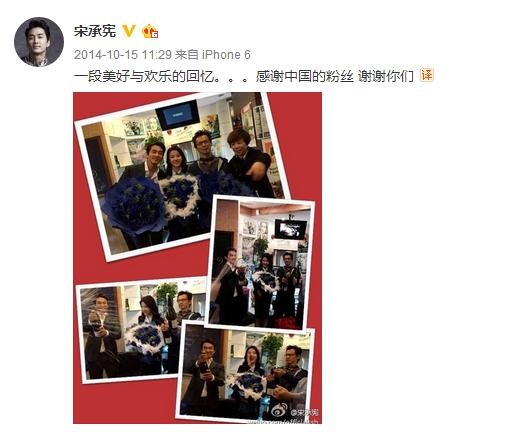 2014年8月4日影片第一天开工哦,宋承宪晒美美的合照。