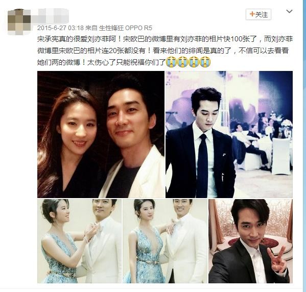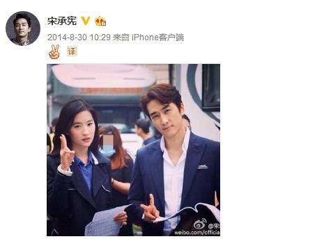 直到影片8月初开机,宋承宪刘亦菲再次见面。从这时候开始,宋承宪的微博就进入了疯狂晒刘亦菲模式。