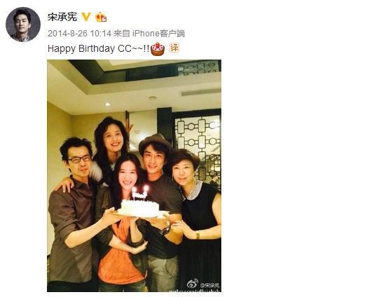 2014年8月26日为刘亦菲庆生,还亲密地称呼女生CC,关系似乎进了一步!