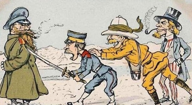 开始日军连败俄军。俄方则拼命赶工期,在7月13日西伯利亚大铁路通车。靠着这条铁路,俄国迅速从欧洲调动大量军队,最终使兵力超过了日军,所以,才有了沙俄承认战败却不赔款底气。