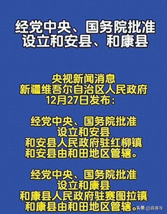 这两个新县的设立啊,可不是拍脑门决定的,那是经过党中央、国务院的严格审批,用心良苦啊!这背后,体现了国家对新疆大规模发展的高度重视,对和田各族人民的关怀厚爱。