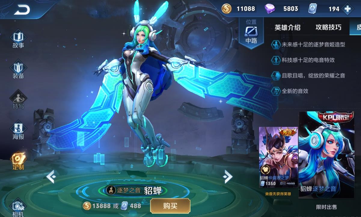 而逐梦之音貂蝉也是为玩家带来全方位的电音特效体验,全新的造型、音效、技能特效,配上科技感十足的歌姬造型,体现出了英雄本身不一样的气质。这两款皮肤也都属于限定版的珍贵皮肤,目前玩家想要获得都比较困难。所以如果看到好的皮肤一定要及时下手哟~