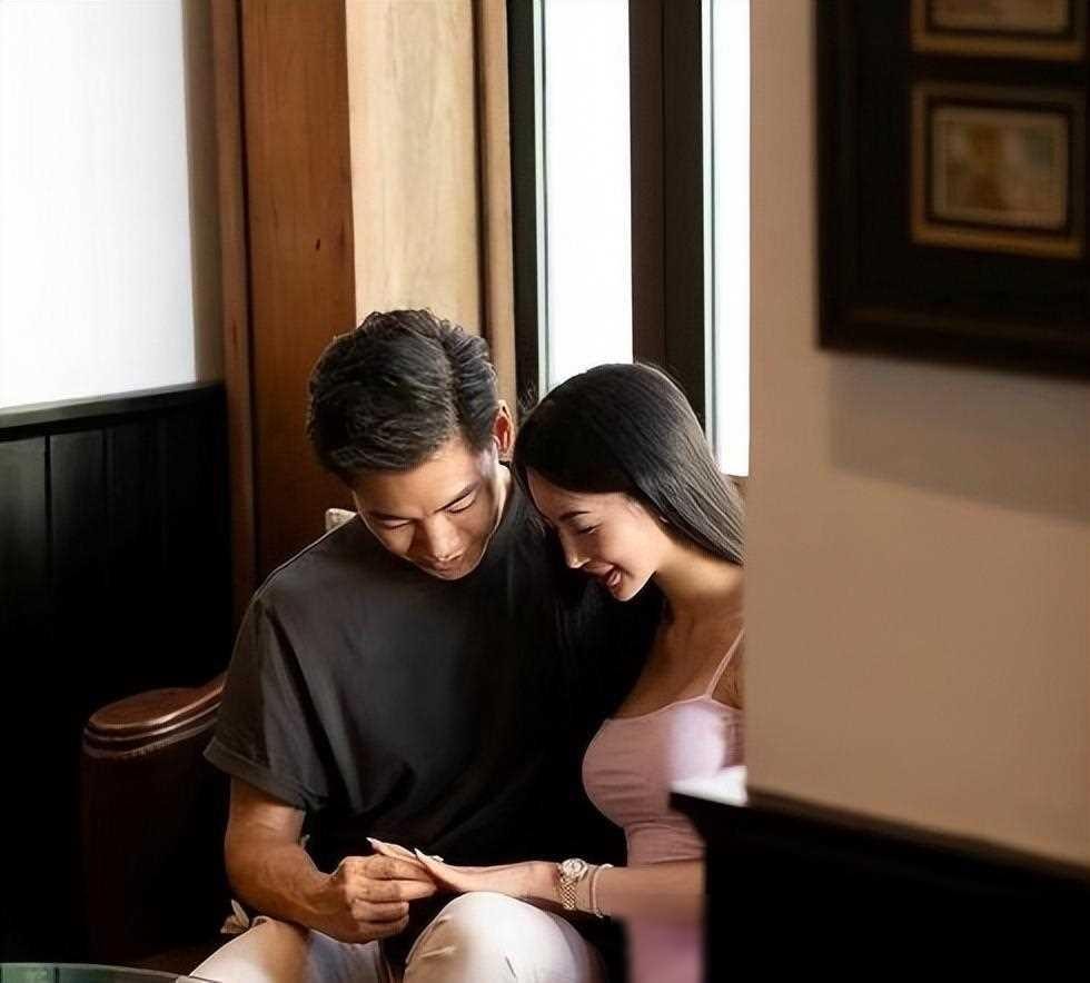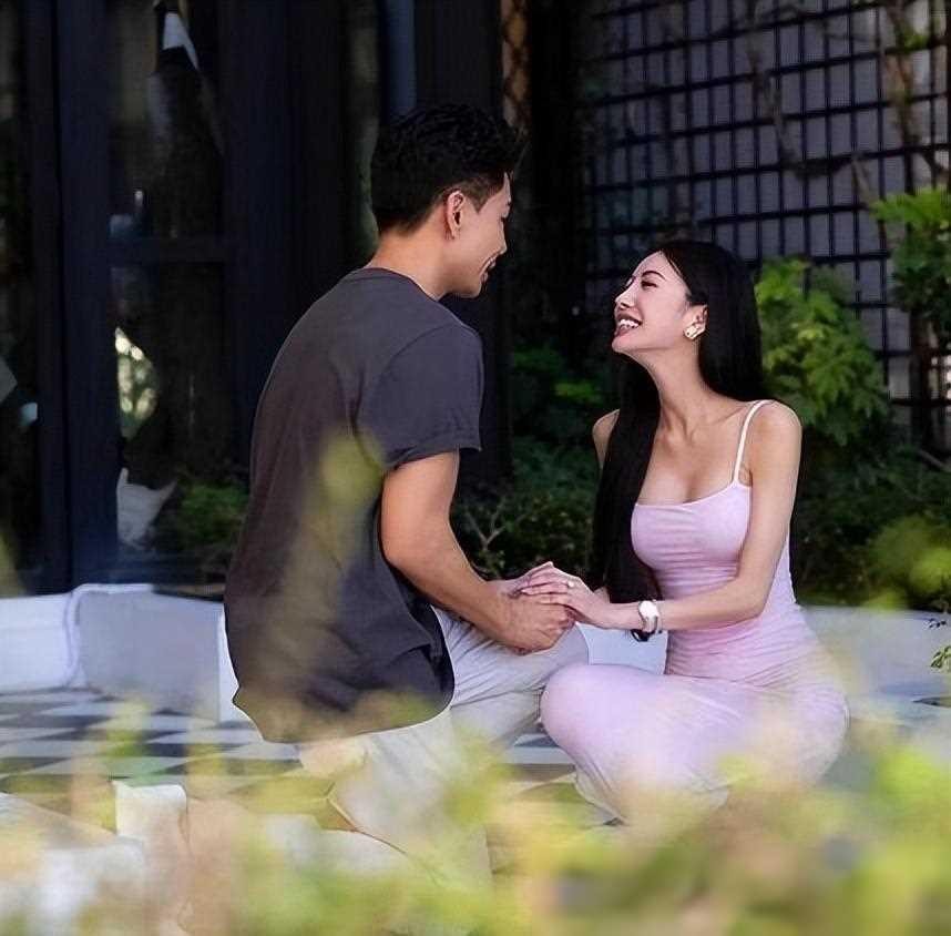 在这段幸福的时刻里,孔令奇身穿宽松舒适的深咖色T恤和米白色裤子,与Eunice Jaymie Tan相得益彰。而Eunice Jaymie Tan则身着一袭粉色修身吊带裙,展现出妖娆的风姿。