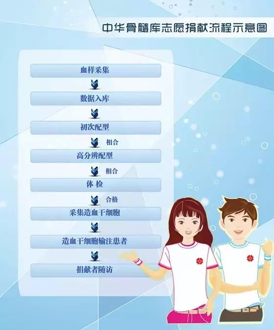 如果您适龄、身体健康、志愿捐献造血干细胞,可到中国造血干细胞捐献者资料库设于全国各地的捐献者服务中心报名、填写志愿捐献书及有关表格,并抽取5毫升血液。组织配型实验室将会对您的血液进行HLA分型等检验,并把您的所有相关资料录入中国造血干细胞捐献者资料库的计算机数据库中,以供渴望移植治疗的患者寻找配对,这样您就成了一名光荣的捐献造血干细胞志愿者。