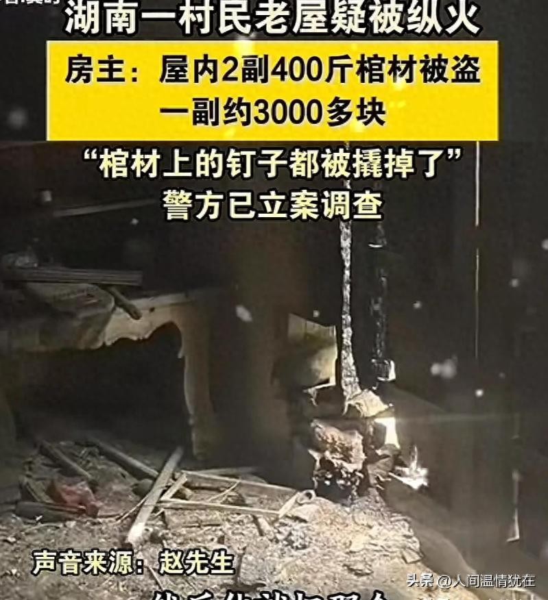 八月的一个深夜,湖南蓝山县山背村,一场火光照亮了整个夜空。"轰隆"一声,赵先生家那座已经十几年无人居住的老屋突然燃起了大火。村民们纷纷赶来救火,可等火势被扑灭后,屋内的景象却让所有人惊掉了下巴 —— 两副重达400斤的棺材竟然人间蒸发了!