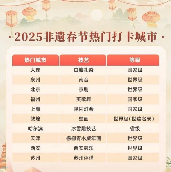 首个非遗春节旅行地图发布,大理荣登2025春节计划打卡人数最多城市榜首。