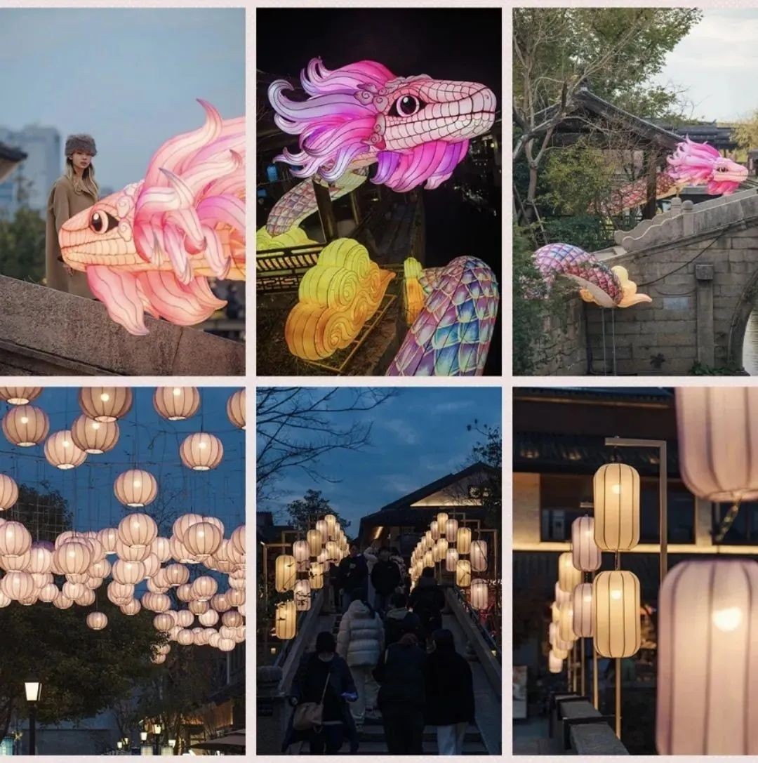 近日,蟠龙天地千盏巳物灯组被点亮,打造乙巳蛇年最美江南灯会。