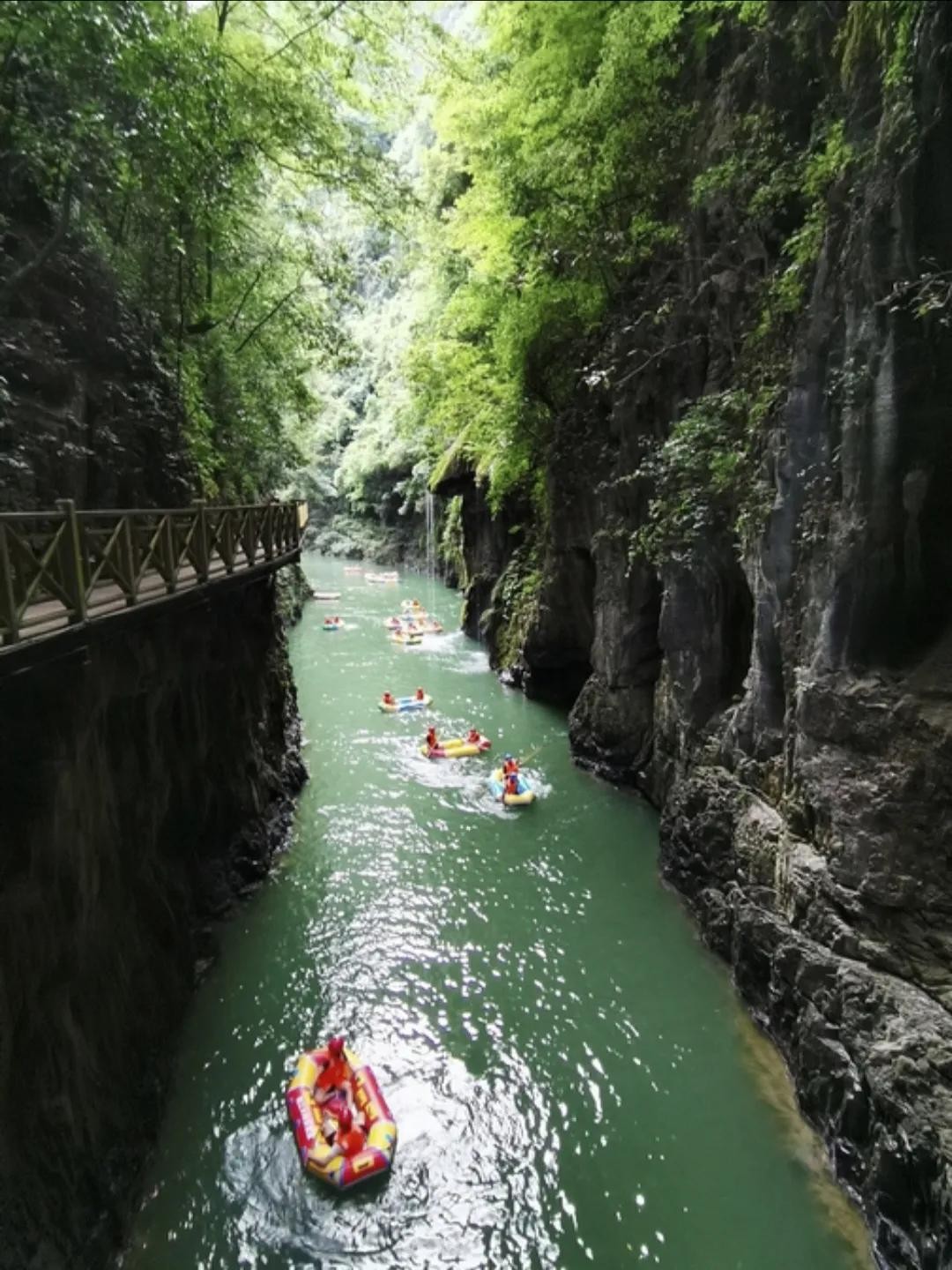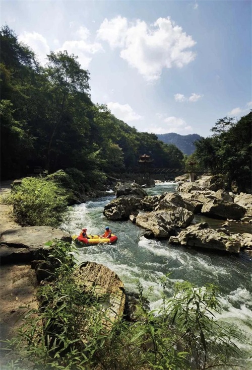 走完峡谷需三四个小时,如果你的体力不支或时间不够,请及时回头,原路返回。如果你坚持走完峡谷,在终点处可以选择铁皮船(50元)或缆车(50元)将你送回公路上,再搭乘观光车回到景区入口。南江大峡谷的漂流活动很值得尝试,河道宽阔而清澈,合理的落差分布使得整个体验既刺激又安全。漂流分为休闲漂(148元,5公里)和激情漂(168元,8公里)两种。操子塘是休闲漂的终点,游客需要在此下船步行继续游览。而漂流的精华几乎都在接下来的这3公里,如果身体状况允许,建议选择激情漂。在水流湍急的雨季,皮艇由船工驾驶。而在水流相对平缓的季节,6你将有机会亲自持桨。