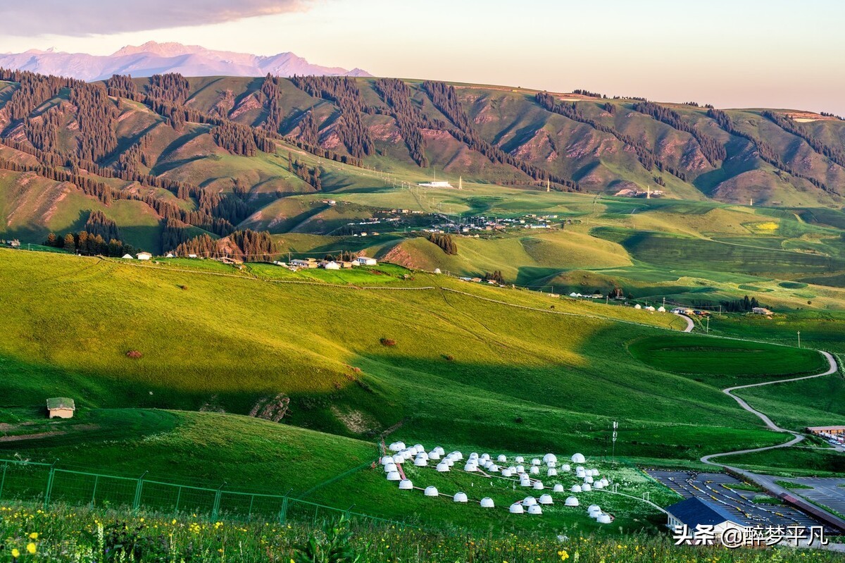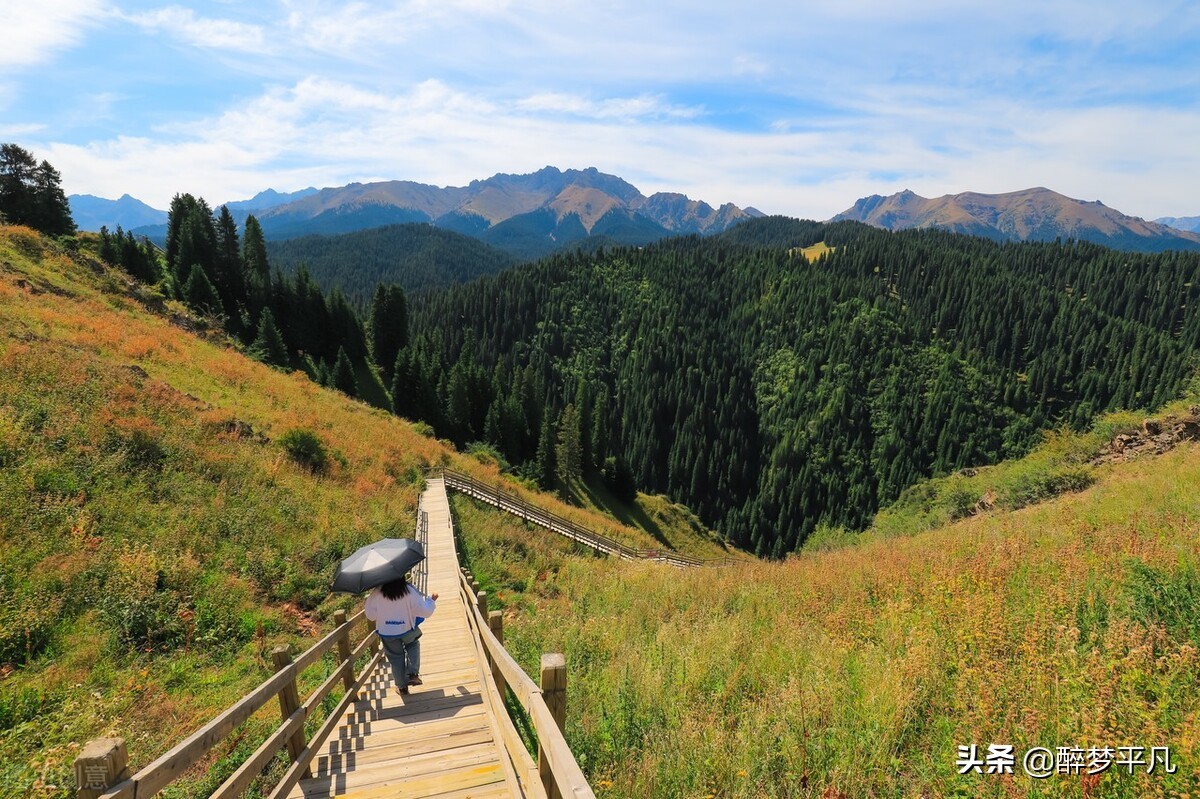 新疆 的景区都有一个特点,就是面积特别大,江布拉克也是这样。江布拉克景区位于奇台县半截沟镇,距县城45公里,距乌鲁木齐195公里,是国家级森林公园、国家AAAAA级旅游景区(2022年7月刚刚公布)、被中科院确定为保护最完整的最早绿洲文化之一。景区总面积48平方公里,是古丝绸北道重要景区之一,由万亩旱麦田、天山怪坡、汉疏勒城、木栈道、黑湖等景点构成。江布拉克允许游客自驾车进入,除游客的门票(43元/人)外,每辆车另收100元。景区里有一条环形的行车路线,单程20多公里,沿途有很多设置好的景点和观景台,名称和位置可以参考门票上的路线图。游客也可以乘坐景区的观光车游览,不过这样毕竟不如自己开车自由和方便。风景好,看得见雪山,也有大草原,麦田,有高山松林,也有那拉提那种草原风光,美得看花眼!大麦田绿色的时候,成熟的时候都是非常的漂亮,连绵起伏,像一张大大的地毯。