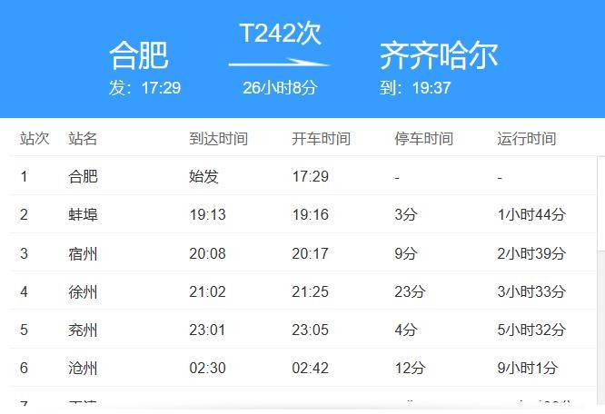 那么,问题来了,合肥到哈尔滨,有没有直达的,中途不需要转车的那种列车班次呢?