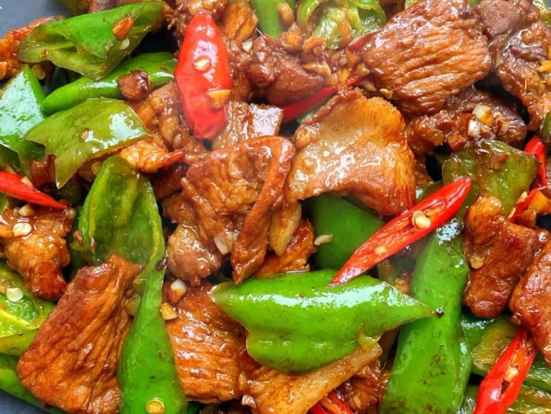 1、猪肉切成薄片(要带点肥肉的),青尖椒切成滚刀块,小米辣斜切成段。