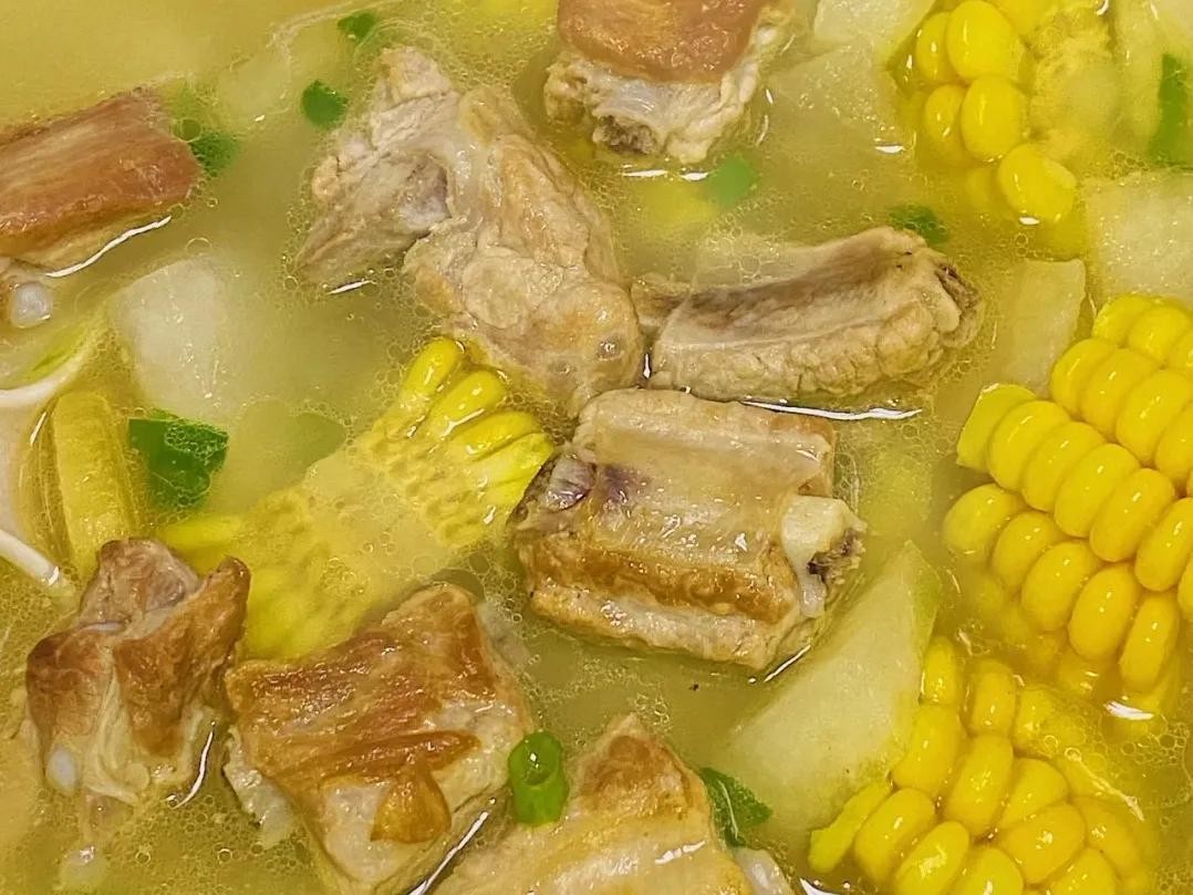 4、放入玉米再炖煮15分钟,然后再放入冬瓜,继续煮15分钟。