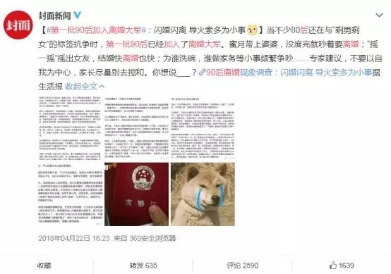 2018年4月,#第一批90后加入离婚大军#就曾登上微博热搜,引发热烈讨论。