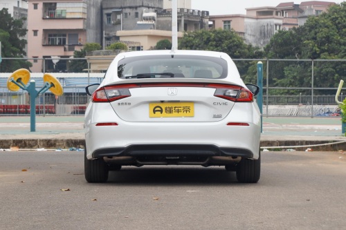 外观方面,本田思域打造了时尚、运动、线条简洁的外形设计,使人感受到科技感和运动感。车身外观轮廓明显向后倾斜,突出了其运动性格。整体看起来更加细长,饱满的曲线设计,动感十足。尾部轮廓常规上窄下宽,线条走势平和,尾部向后收缩,轮眉更为显著,宽体效果突出,结合略带弧度的小尾翼和双边双排气口,整体组件塑造运动效果较为明显。